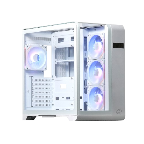 کیس Odin با ابعاد ۴۴۳×۲۸۰×۴۴۰ میلیمتر و وزن ۵.۴ کیلوگرم، مانند بنایی باشکوه، روی میز گیمینگت میایستد. سقف شیشهای ۵ میلیمتری، که با الهام از Lian Li O11 Vision طراحی شده، قطعات داخلی را مانند جواهری در ویترین به نمایش میگذارد. السیدی کوچک جلویی، مانند چشمی جادویی، اطلاعات لحظهای منابع سیستم (CPU، GPU، رم) و دمای قطعات را نشان میدهد و با نرمافزار اختصاصی تسکو، میتوانی سرعت بهروزرسانی آن را شخصیسازی کنی. بدنه از فولاد SPCC 0.5 میلیمتری و شیشه ۵ میلیمتری ساخته شده و پایههای ضدلغزش، ثبات را تضمین میکنند. عرضه در دو رنگ مشکی و سفید با کابلهای همرنگ، این کیس را به نمادی از شکوه و هماهنگی تبدیل کرده است.