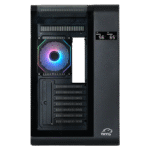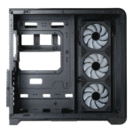 ۴ فن ARGB PWM (۳×۱۲۰ میلیمتری کنار مادربورد با تیغههای معکوس Reverse Blade و ۱×۱۲۰ میلیمتری عقب) مانند نگهبانان قلمرو، جریان هوا و نورپردازی خیرهکنندهای ایجاد میکنند. فنهای کنار مادربورد با طراحی Reverse Blade، زیبایی اینفینیتی را با جریان هوای ورودی حداکثری ترکیب میکنند تا نیازی به انتخاب بین عملکرد و ظاهر نباشد. فن عقب، گرما را بهصورت استاندارد خارج میکند. هاب فن پیشفرض، اتصال و کنترل فنها را آسان میکند. کیس تا ۷ فن پشتیبانی میکند: ۳×۱۲۰ میلیمتر کنار مادربورد (نصبشده)، ۱×۱۲۰ میلیمتر عقب (نصبشده)، و ۳×۱۲۰ میلیمتر کف (اختیاری).